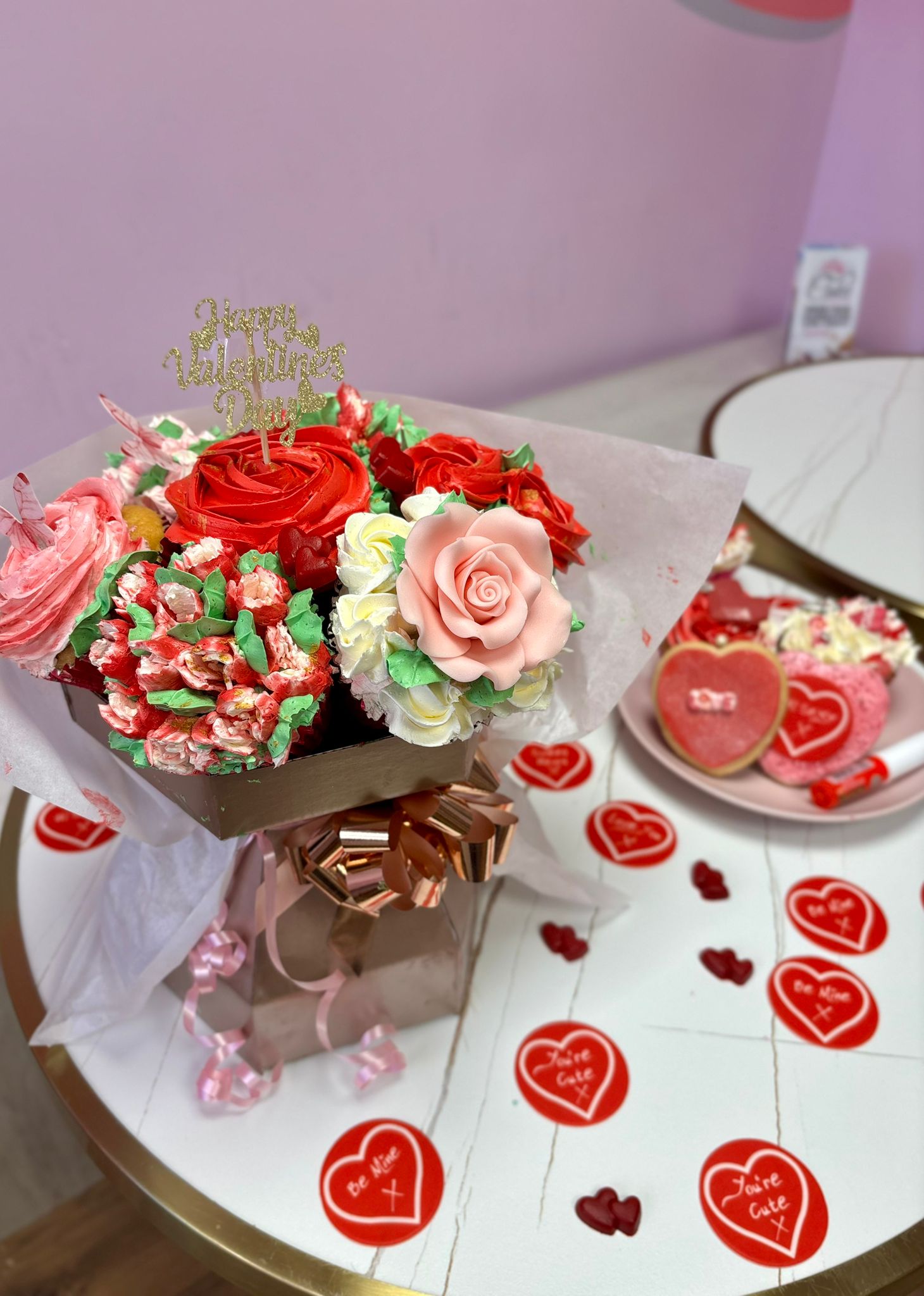 The Cupcake Bouquet is a delightful arrangement of gourmet cupcakes designed to resemble a beautiful floral bouquet. Each cupcake is expertly crafted with rich flavors and topped with luscious, handcrafted frosting, making it a visually stunning and delicious gift for any occasion. Perfect for celebrations, this unique treat combines the charm of flowers with the indulgence of sweet confections, ensuring a memorable experience for recipients.