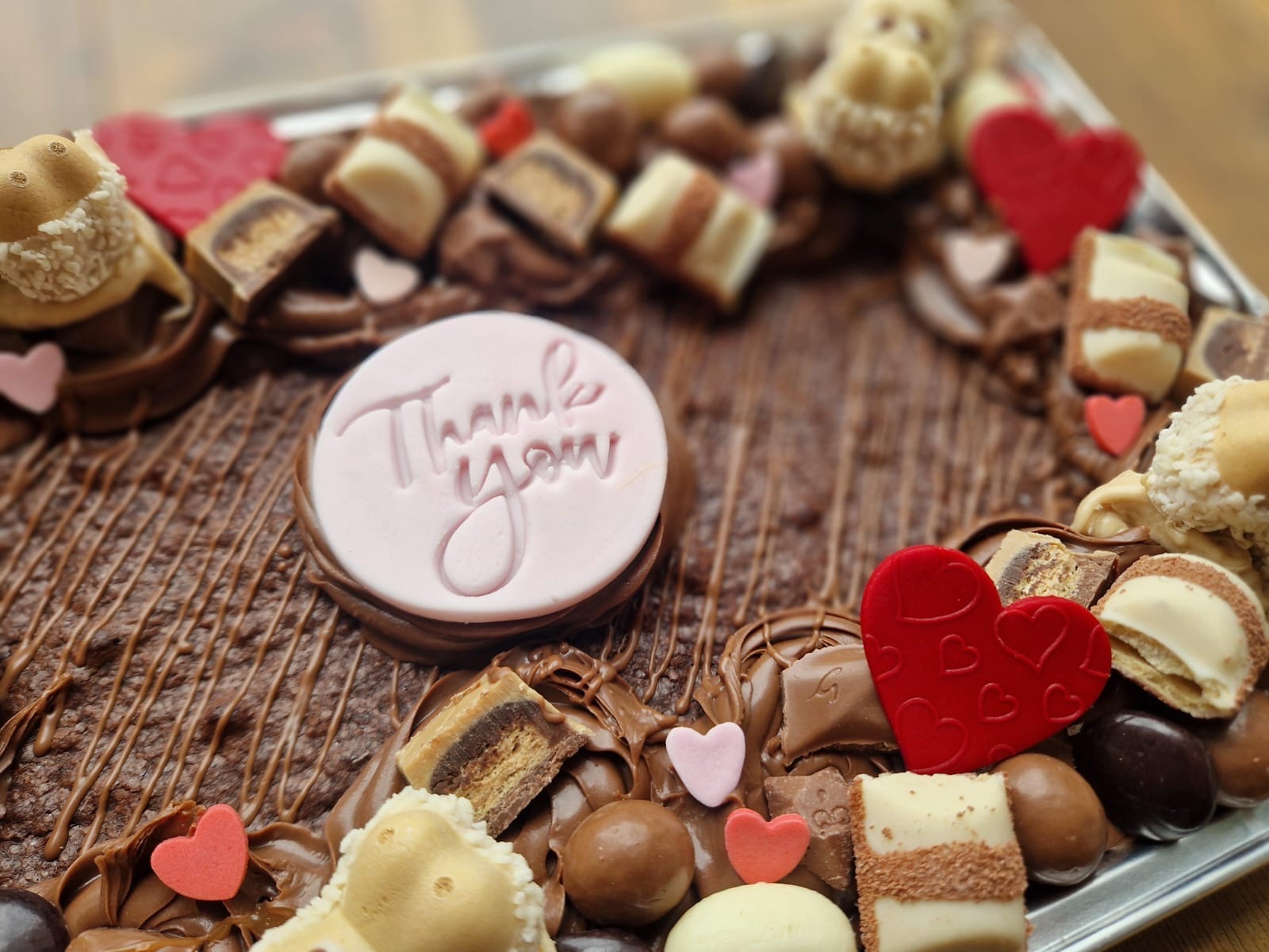 Say it Sweetly with our handcrafted Deluxe Brownie Slab – a rich, fudgy chocolate treat topped with all your favourite indulgences. Whether you’re thanking a teacher, colleague, friend, or loved one, this beautifully presented slab makes the perfect edible gift.