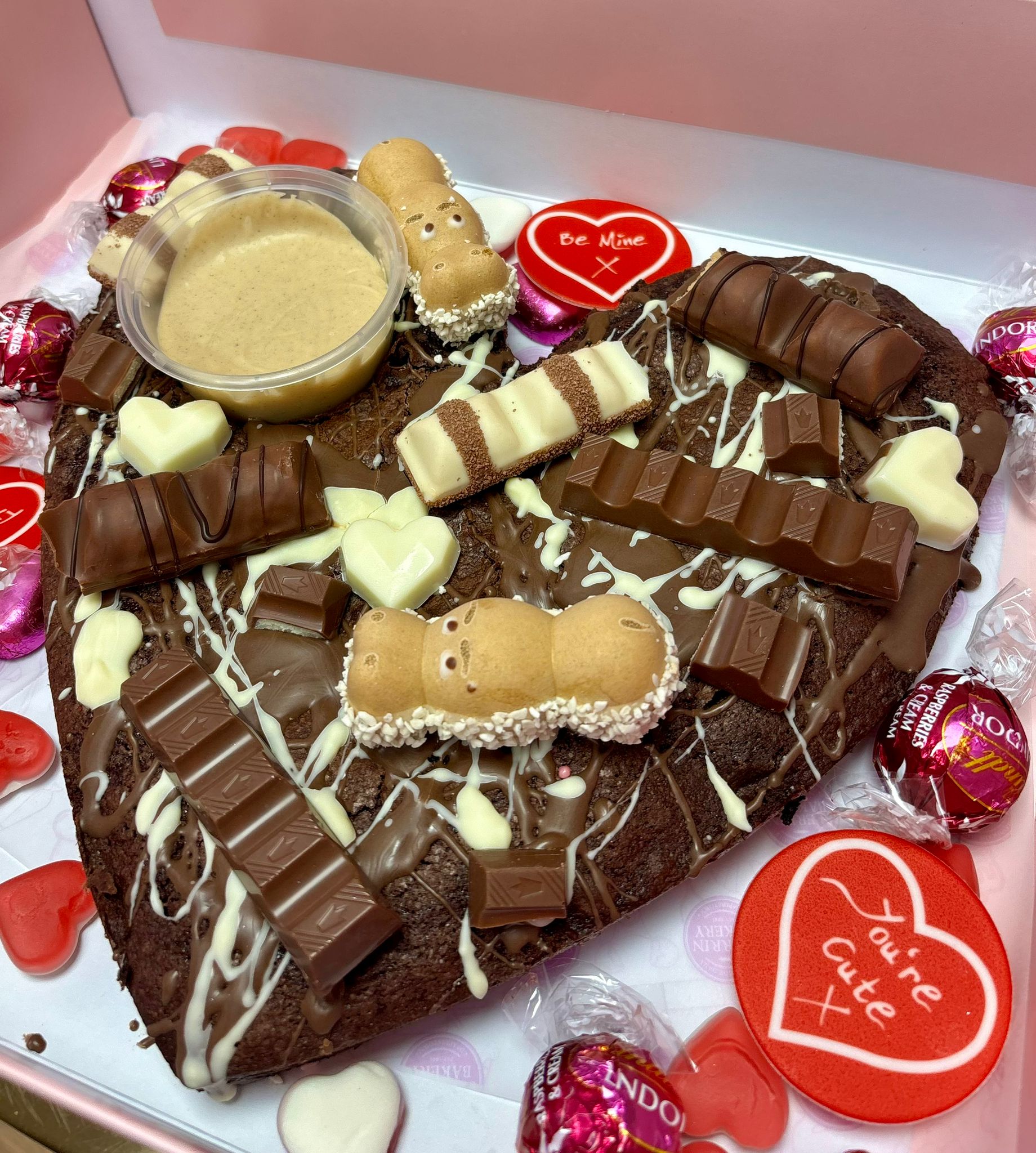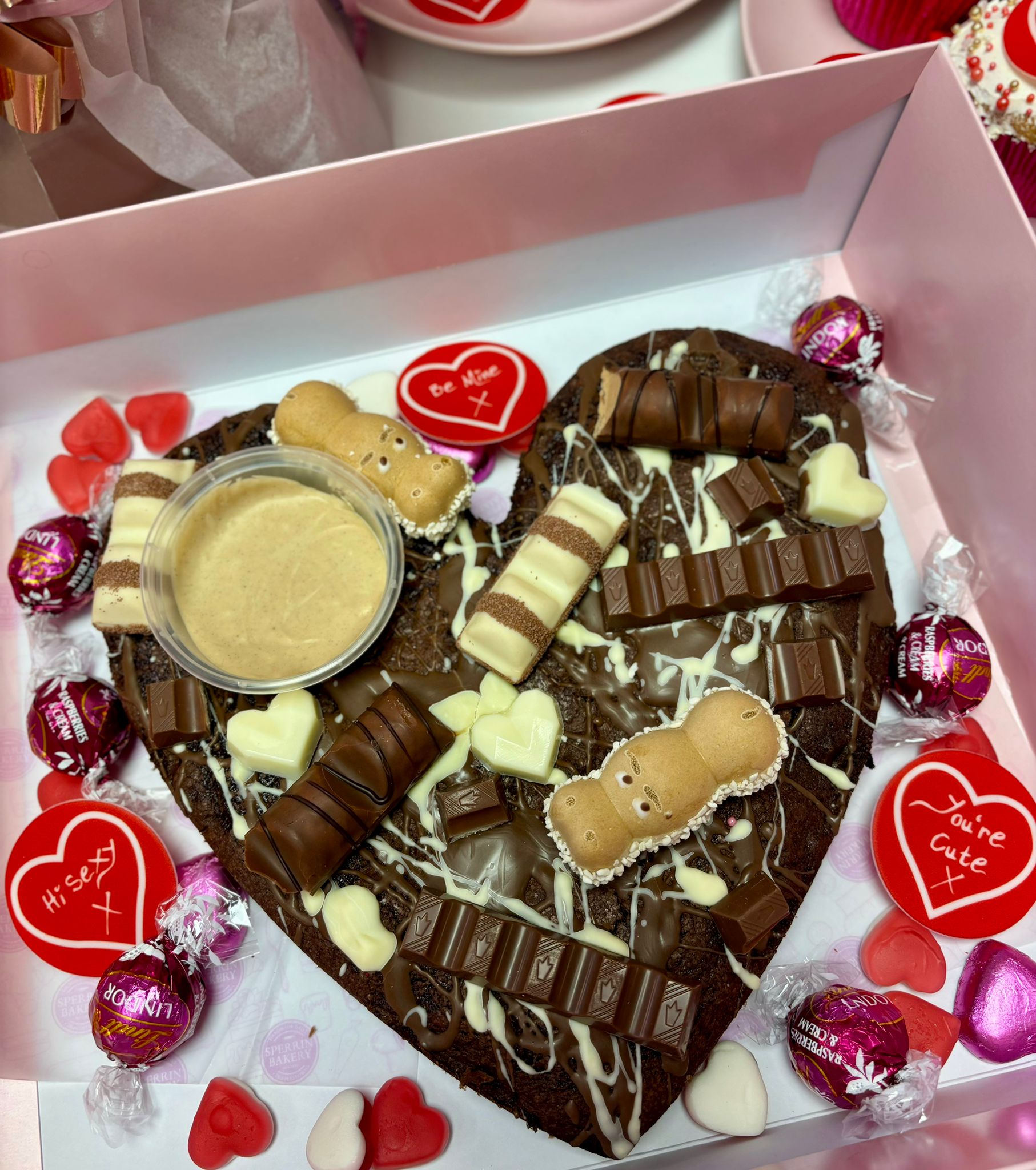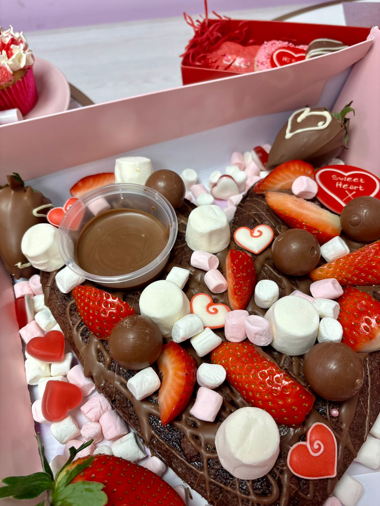 Indulge in the ultimate Valentine's treat with our Heart Dipping Brownie Slab, a decadent dessert designed to delight your loved one. This rich, fudgy brownie slab is crafted with premium ingredients, ensuring a moist and flavorful experience in every bite. Adorned with a charming heart shape, it is perfect for sharing or gifting, making it an ideal choice for celebrating love. Each slab is complemented by a selection of delightful dipping sauces, to include nutella, biscoff, white chocolate hazelnut allowing for a personalized touch to this sweet gesture. Celebrate your affection with this exquisite brownie slab that embodies the spirit of Valentine's Day.